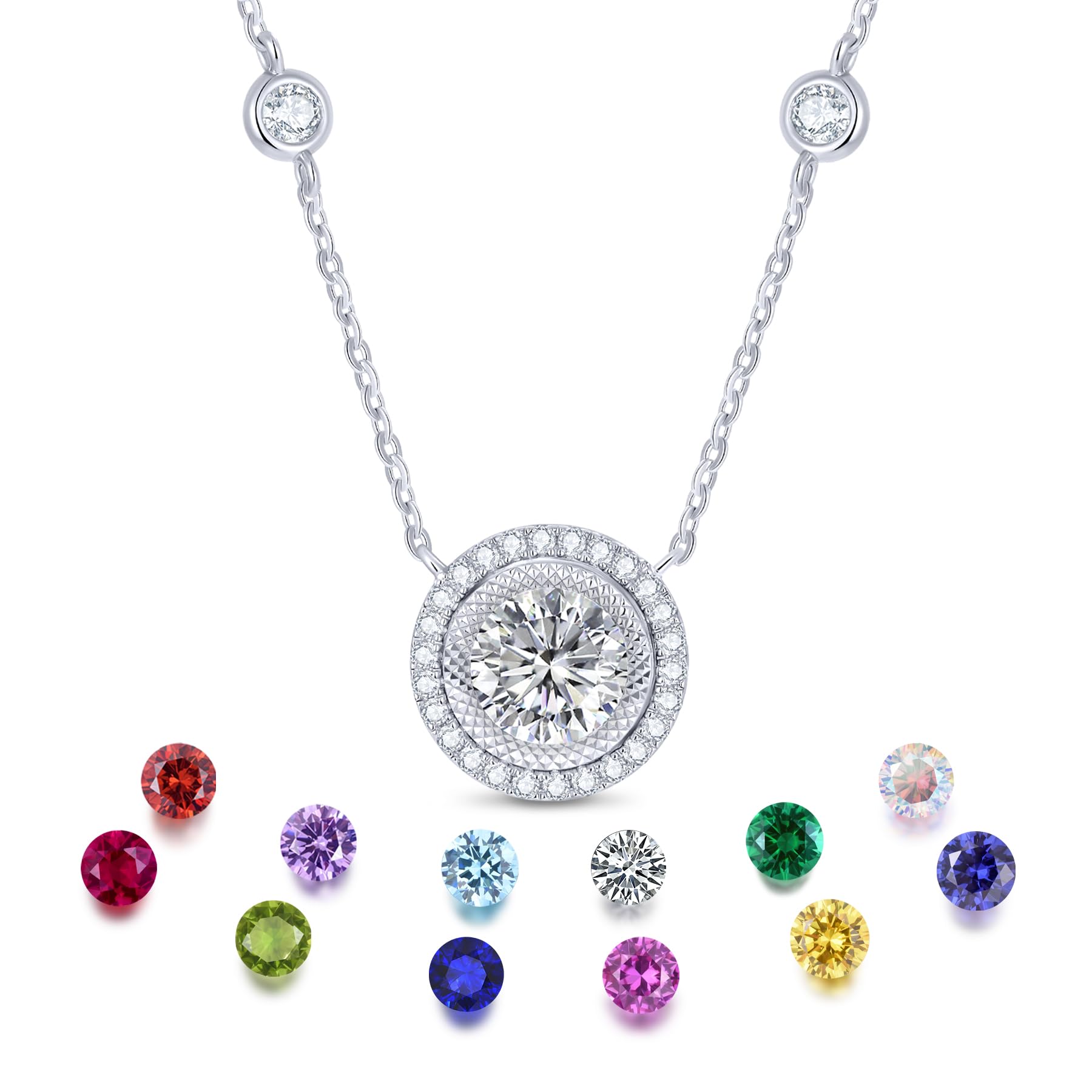 KSTYLE Moissanite Pendant Necklace for Women DIY Birthstone Necklace with 12 Birthstones Set