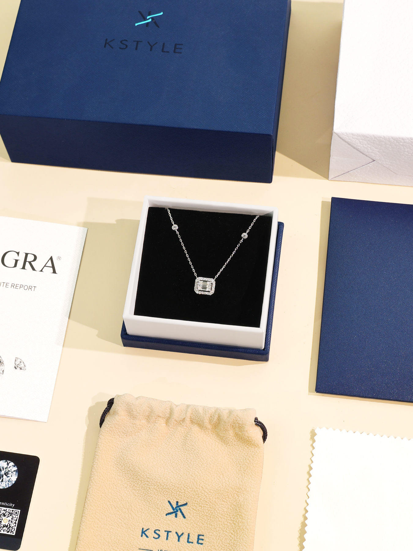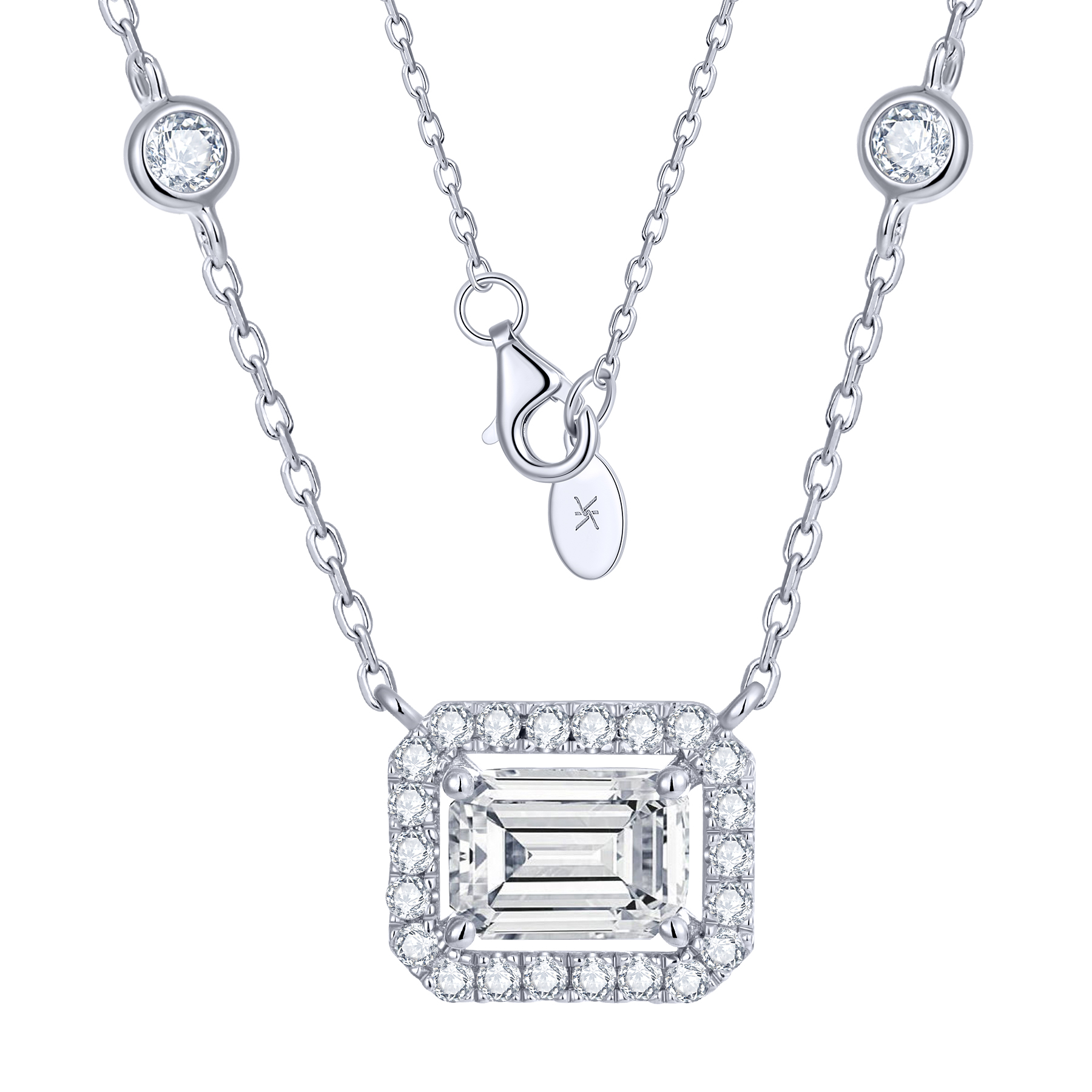 KSTYLE Moissanite Necklace for Women,D Color VVS1 Clarity 925 Sterling Silver Necklace,Emerald Cut Necklace