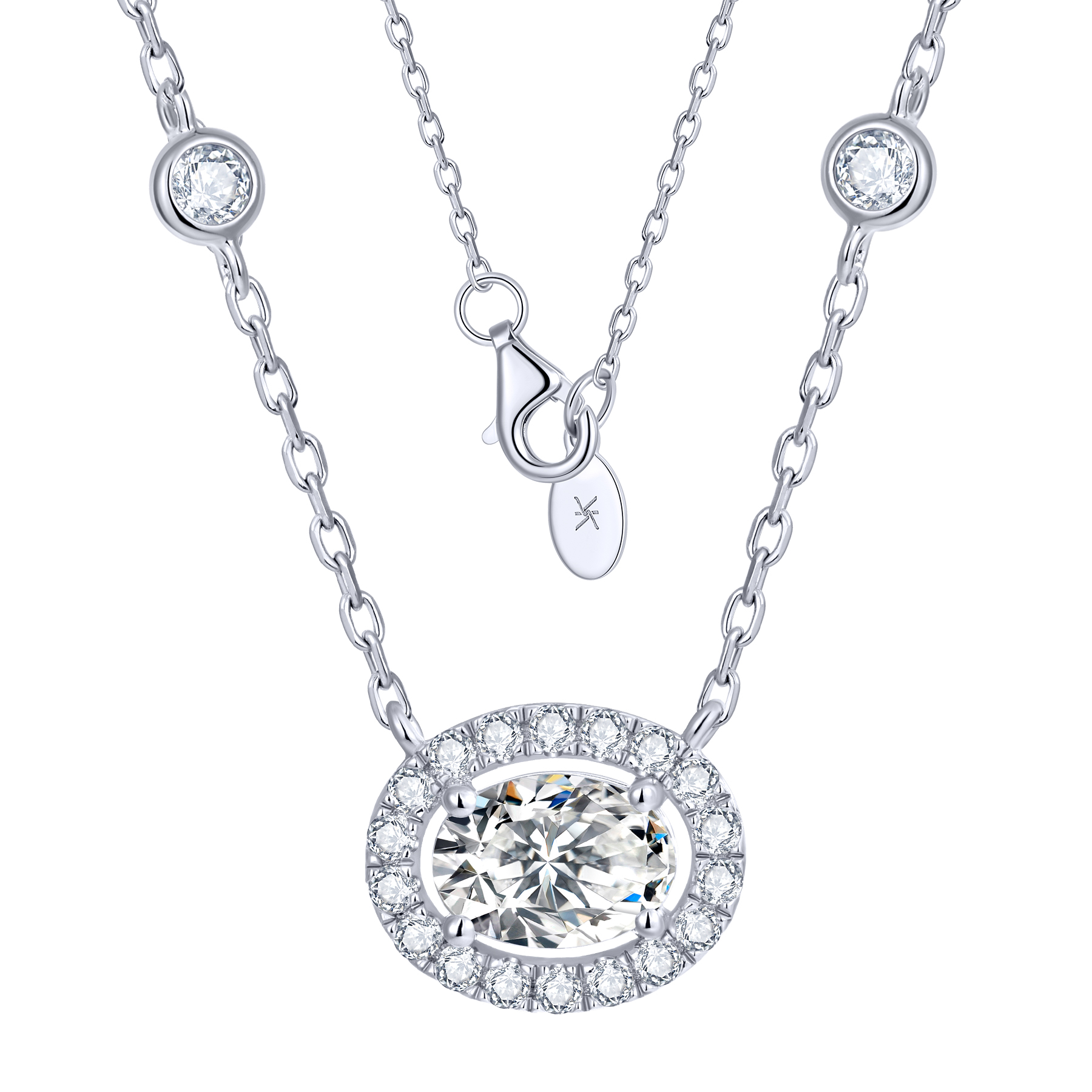 KSTYLE Moissanite Necklace for Women|D Color VVS1 Clarity 925 Sterling Silver Necklace,Oval Cut Necklace